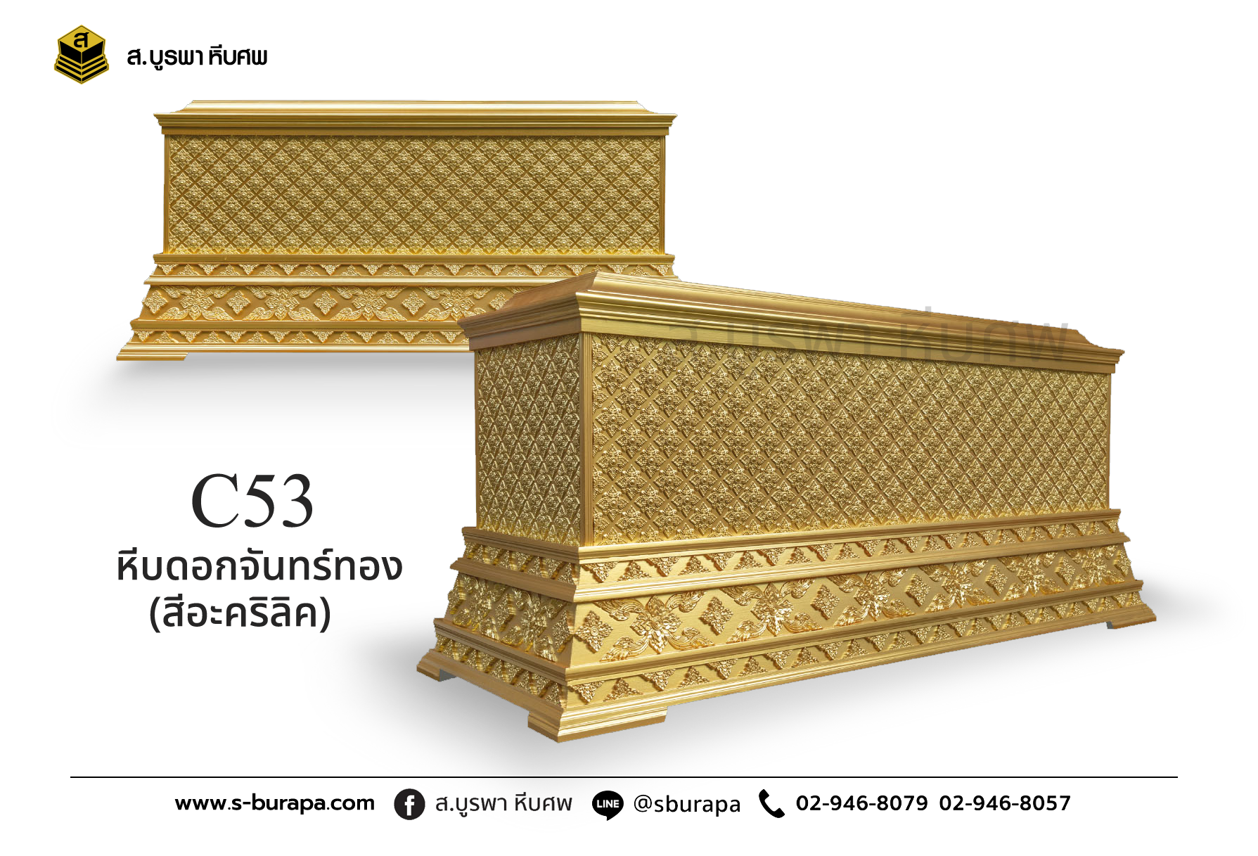 โลงศพสีทอง (โลงทอง) แกะสลักลายดอกจันทร์เทพกลาง