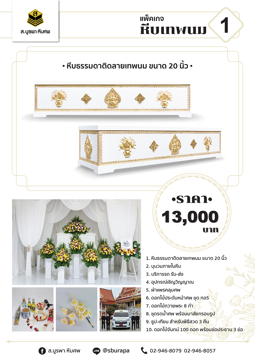 แพ็คเกจจัดงานศพ โลงศพธรรมดาติดลายเทพพนม ราคา 13,000 บาท